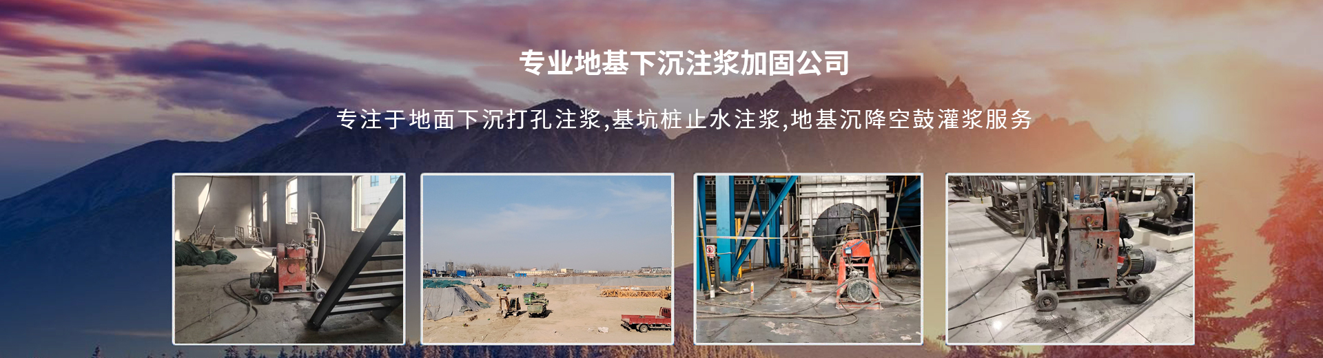 专业地基下沉注浆加固公司专注于地面下沉打孔注浆,基坑桩止水注浆,地基沉降空鼓灌浆,基坑桩止水注浆,基础沉降灌浆,房屋地基下沉纠偏扶正,厂房基础下沉灌浆等服务。 “以质量求信誉,以信誉求发展”为企业方针,以“诚实守信、精益求精”为经营理念,艰苦奋斗、追求卓越,公司发展至今已拥有了一批素质高,经验丰富的高、中级加固技术人员,培养了一支管理规范、技术精湛的高水准加固施工队伍具备了优秀的设计及施工经验。由于方案科学合理,施工高质高效,所承建工作均顺利通过各级检测鉴定并受到甲方一致的好评。
